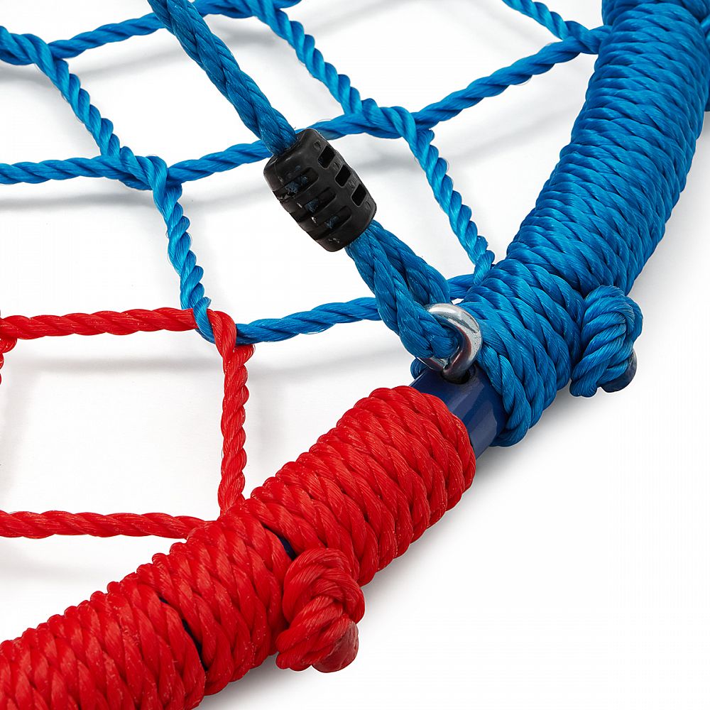 Rám s priemerom 100 centimetrov je vyrobený z oceľovej guľatiny s priemerom 32 milimetrov, na ktoré je pre maximálne bezpečie nalepená vysoká vrstva PE peny. Polyetylénový výplet modelu NB5039 má priemer 6,5 milimetra a je maximálne odolný voči povětrnostím vplyvom ako je dážď a sneh, hniezdo tak nemusíte schovávať keď práve začne pršať. Nosná, polyetylénová lanká majú priemer 10 milimetrov a dĺžku 180 cm. Keď tieto vlastnosti skombinujeme tak získame priestrannú hojdačku s nosnosťou 180 kilogramov, na ktoré sa vybláznia aj viac detí naraz.