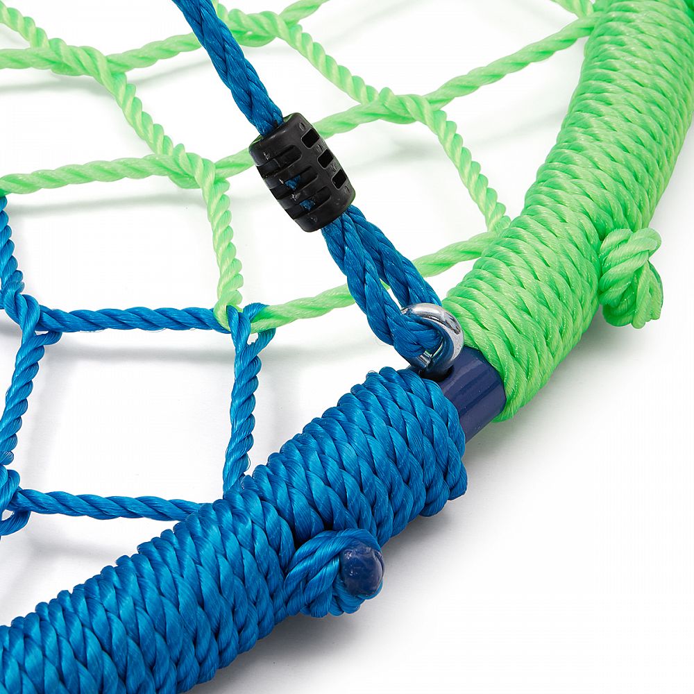 Rám s priemerom 100 centimetrov je vyrobený z oceľovej guľatiny s priemerom 32 milimetrov, na ktoré je pre maximálne bezpečie nalepená vysoká vrstva PE peny. Polyetylénový výplet modelu NB5039 má priemer 6,5 milimetra a je maximálne odolný voči povětrnostím vplyvom ako je dážď a sneh, hniezdo tak nemusíte schovávať keď práve začne pršať. Nosná, polyetylénová lanká majú priemer 10 milimetrov a dĺžku 180 cm. Keď tieto vlastnosti skombinujeme tak získame priestrannú hojdačku s nosnosťou 180 kilogramov, na ktoré sa vybláznia aj viac detí naraz.