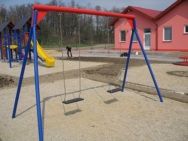 - Oceľová konštrukcia - komaxit - nohy + brvno zinok alebo komaxit, dve závesné hojdačky so sedákom (za príplatok je možné na konštrukcii zavesiť hojdačku s ohraničením určenú pre menšie deti).