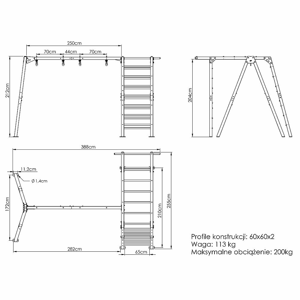 Popis: Oceľová konštrukcia na záhradné hojdače s preliezačkou / rebrinami MARBO MO-Z7