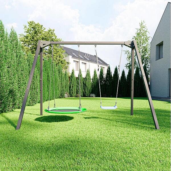 Dvojitá hojdačka MO-013 má 2 páry závesov a tak je možné na rám zavesiť 2 hojdačky, čo vám dáva veľa možností. V závislosti na vašich potrebách a preferenciách môžete nainštalovať akýkoľvek typ hojdačky - tradičné s plastovým sedadlom, drevenú dosku, kruhovú hojdačku, hojdačku s rámom pre najmenšie deti alebo brazílske kreslo pre vlastnú relaxáciu. Je tiež možné využiť väčšie rozstupy pre jednu veľkú hojdačku - do viac ako 3 m širokého rámu sa zmestí napríklad čapí hniezdo alebo hojdacia lavica pre viac osôb. Maximálna nosnosť hojdačky MO-013 je 200 kg, takže konštrukciu môže využívať celá rodina alebo skupina malých hostí naraz.