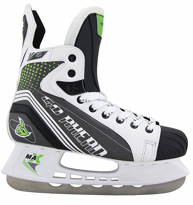 Hokejové korčule ACTION GOLD, vel. 43 majú určenie pre aktívnych športovcov. Kvalitný ergonomický strih zvršku z PA (polyamidovej) tkaniny s bočným zosilnením a spevňovacím prešitím, plastová tvarovaná špička zo špeciálneho TST plastu dobre chráni prsty pred údermi pukom, podšívka z mäkkého velúru, mäkká výstelka s vankúšom. ocele - Stainless Steel.