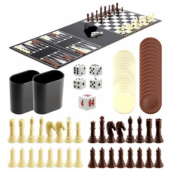 - Šach, dáma, kocky, vrchcáby vrátane sady figúrok, sady kameňov, 2 téglikov a 4+1 kocky.