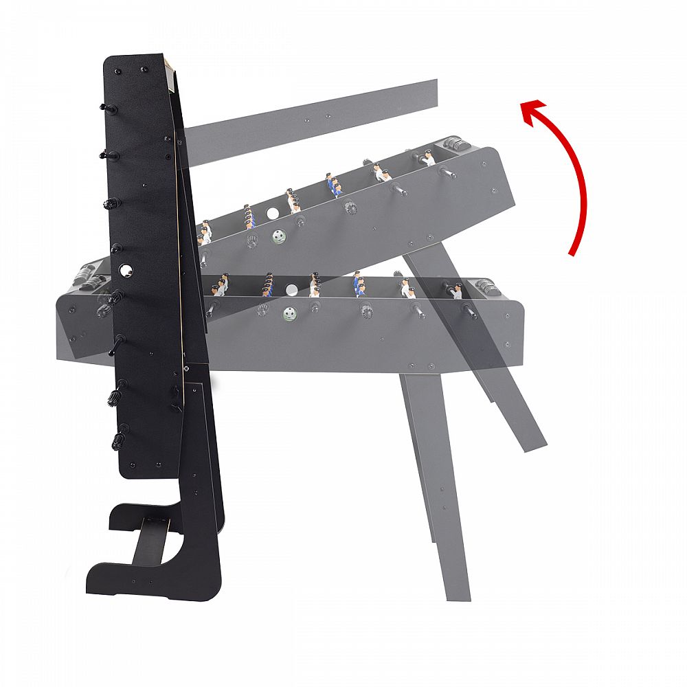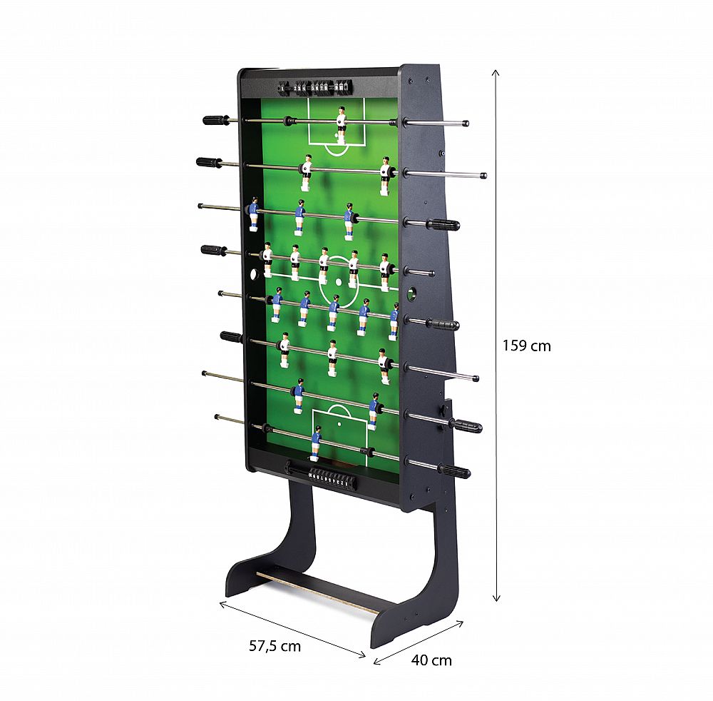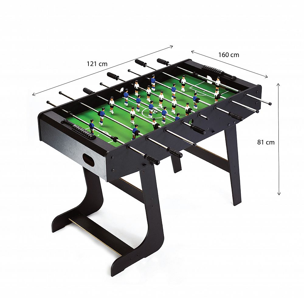 Skvelý skladací futbal, ako alternatíva k daždivým dňom, kedy nie je možné byť na ihrisku. Určený ako pre dospelých, tak pre deti. Tento model je vyrobený z kvalitného MDF, odolného voči akémukoľvek poškodeniu. Hladké vodítka a kontúrované rukoväte zaručujú vysoký komfort a sklopné nožičky umožňujú jednoduchšiu prepravu stolov z miesta na miesto.