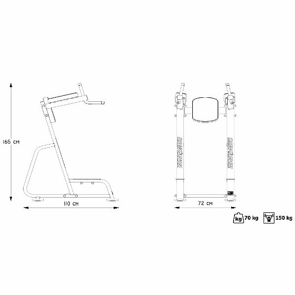 Stacionárny stojan s bralami MARBO MP-U202 je produkt zo série Professional, určený ako pre profesionálne, tak pre domáce precvičenie a posilnenie brušných svalov. Komfortnému cvičenia napomáhajú penové úchyty, pohodlné polstrovanie, alebo naklonené podpery rúk. Robustný a stabilnú konštrukciu zaručuje hmotnosť 70 kg a použitý profil 80 x 40 x 3 mm. Polstrovanie je vyrobené z pevnej, umelej kože dvojito prešité pevnou niťou značky Coats. Oporu zaisťuje 3 mm hrubá oceľová doska. Nášľapy sú vyrobené z vrúbkované, masívne oceľové dosky.