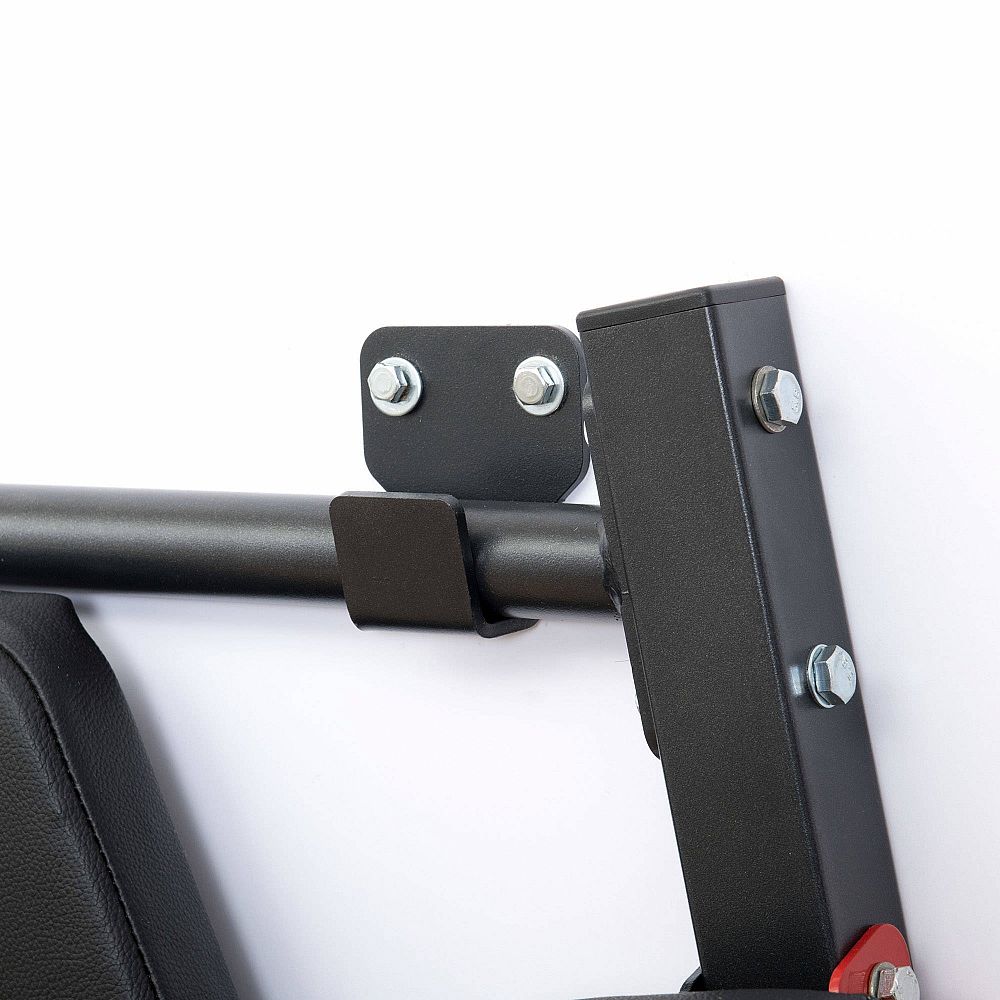Hrazda sa vkladá do profilov, ku ktorým sú pripevnené lakťové opierky , a zaisťuje sa skrutky s ergonomickým úchopom na dotiahnutie bez použitia náradia. Šírka hrazdy je 107 cm a uprostred nájdeme oko na zavesenie boxovacieho vreca.