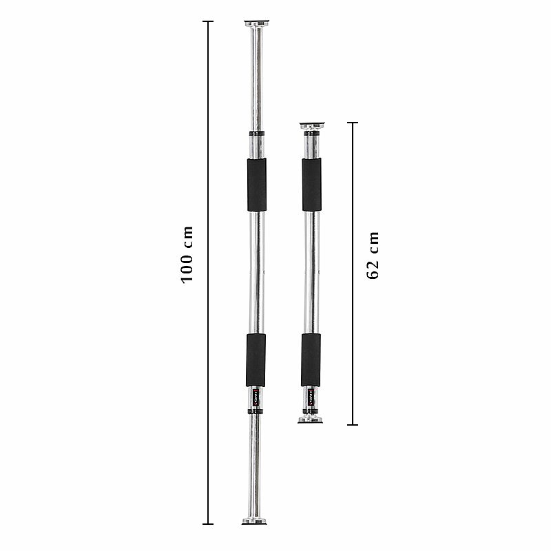 Hrazda do dverí vyrobená z ocele s lesklým chrómovým povrchom. Jednoduchá montáž a vďaka robustným držiakov so závitom aj veľmi bezpečná. Rukoväte sú vyrobené z mäkkej peny. Sada obsahuje ďalšie dve podložky a dve skrutky. Veľký rozsah hrazdy dopomáha tomu, že je vhodná do akéhokoľvek typu dverí. Cvičenie na hrazde je veľmi univerzálnym, vďaka zapojeniu mnohých svalových skupín. Najmä sú zapojené chrbát, svaly paží, ramien a brušné svalstvo.