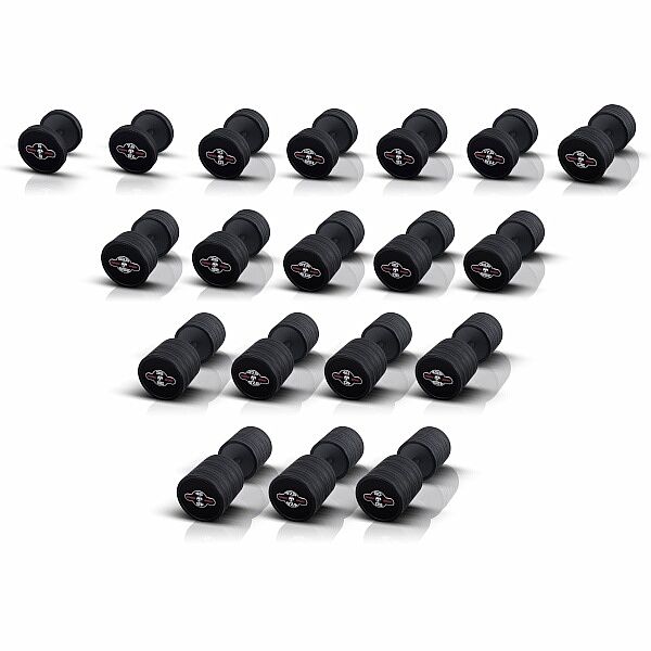 Každé závažie je po obvode opatrené návlekom z kvalitnej gumy, ktorá zamedzuje poškodeniu činky aj podlahy pri neopatrnom odložení. Z čela je činka opatrená štítkom s logom výrobcu a číslom označujúcim hmotnosť.