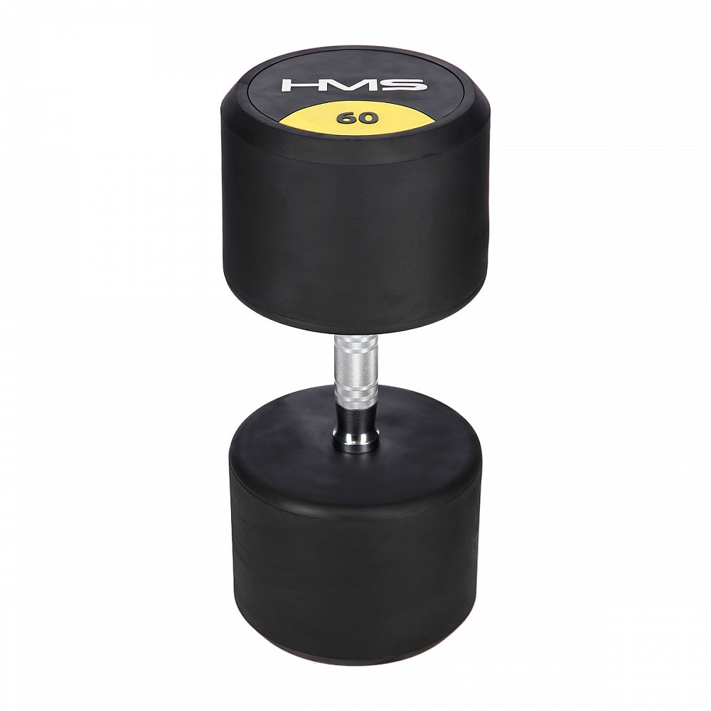 60-tich kilogramová jednoručná činka HMS HG Pro je určená pre profesionálne použitie ako doma tak v posilňovni. Závažie tvorí liatinový odliatok pokrytý hrubou vrstvou gumy, ktorá ochráni ako činku, tak podklad pred poškodením. Na čelnej strane je značka HMS a údaj o hmotnosti v kilogramoch. Rukoväť je vyrobená z chrómovanej ocele, pre pohodlný úchop má súdkovitý tvar s vrúbkovaním. povrchom.
