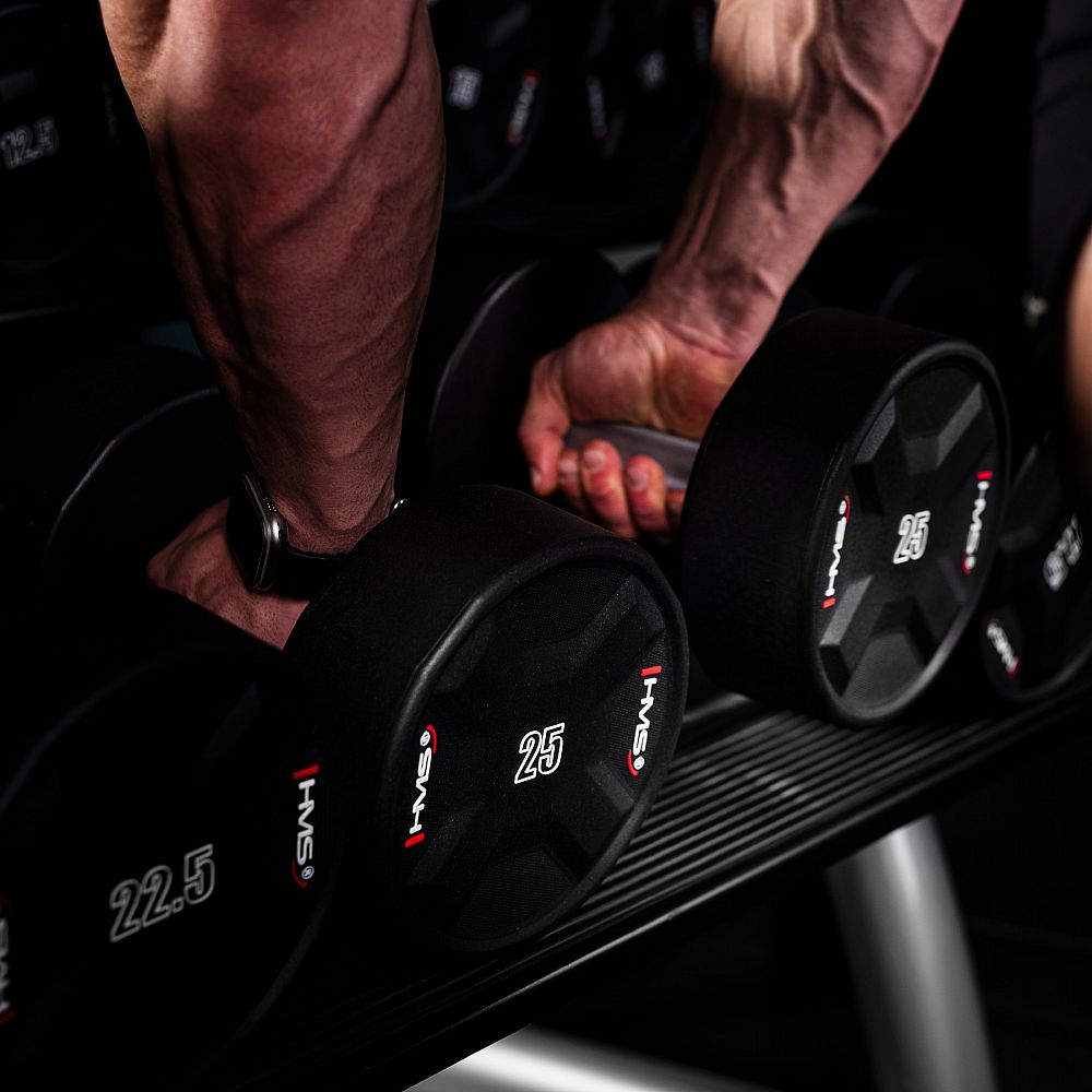 Jednoručné činky HMS HPC sú vyrobené z oceľového jadra potiahnutého liatym polyuretánom (CPU). HPC sú vybavením vytvoreným s ohľadom na najnáročnejších užívateľov. Výnimočná odolnosť, estetické prevedenie a pokročilé vlastnosti z nich robí ideálnu voľbu pre tých, ktorí očakávajú spoľahlivosť počas intenzívnych tréningov.
