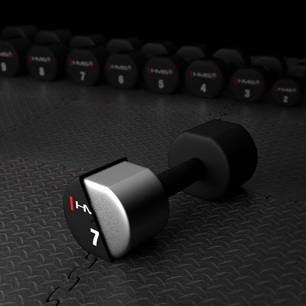 Činky HPT od HMS sú pokryté čiernou vrstvou termoplastického polyuretánu (TPU), čo je materiál známy svojou pružnosťou a zároveň vysokou tvrdosťou. Vďaka tomu sú odolné voči otrasom, poškriabaniu a nárazom, čo zaručuje dlhú životnosť bez straty kvality. Polyuretánový povrch je bez zápachu a chráni podlahu pred poškodením, čím minimalizuje riziko škrabancov alebo hluku počas cvičenia.