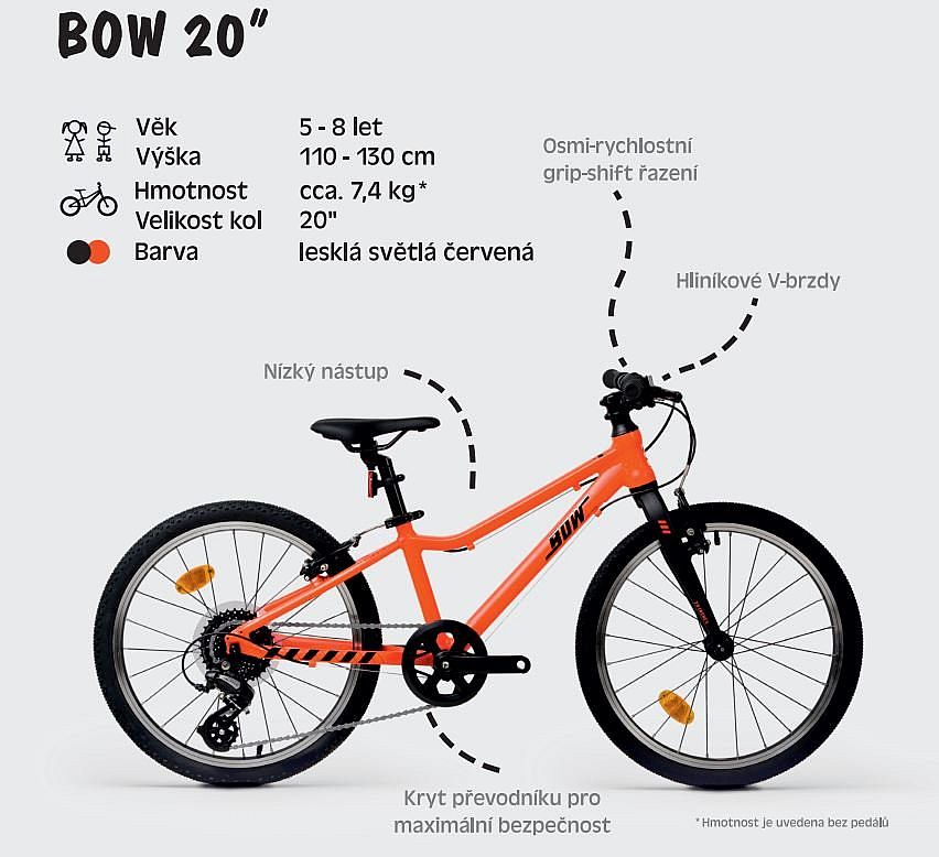 "Ultraľahký bicykel BOW 20" nie je len bicykel, je to štartovacia rampa pre budúce cyklistické hviezdy. Je to nástroj, ktorý deťom pomôže objavovať svet, prekonávať prekážky a zažívať neopakovateľné zážitky."