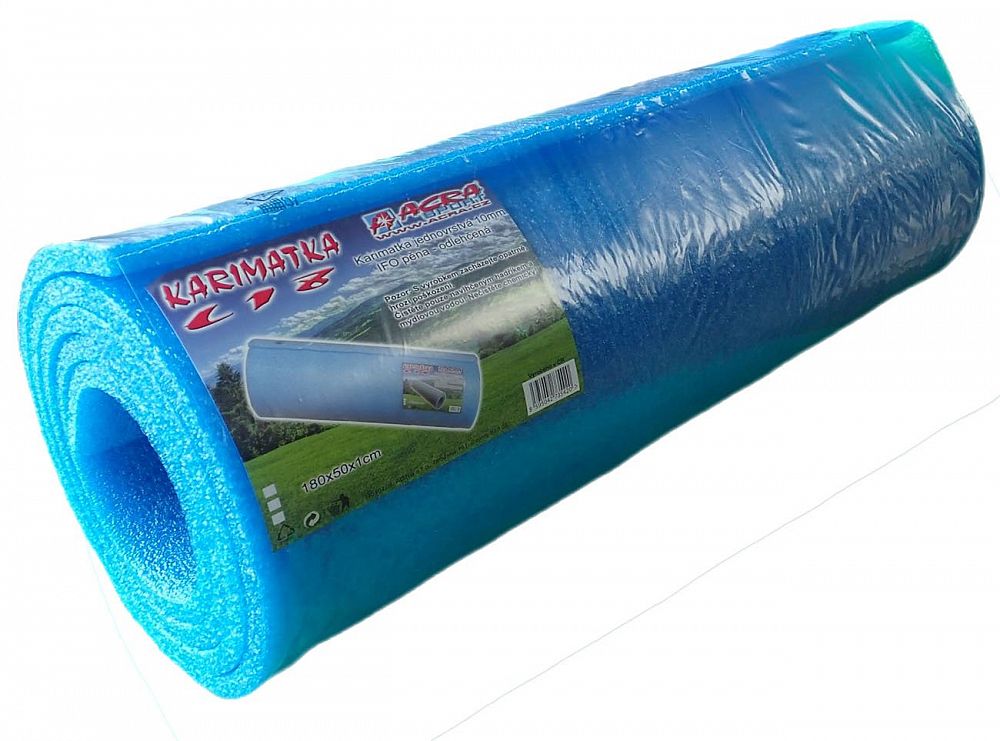 Karimatka jednovrstvová - 10 mm hrúbka, IFO pena - odľahčená. Rozmer 180 x 50 cm. K dispozícii vo farbe modrá.