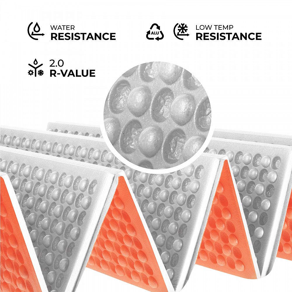 Jadro karimatky je vyrobené z technickej peny XPE – materiálu, ktorý sa vyznačuje nízkou hmotnosťou, vynikajúcou odolnosťou proti deformácii a mechanickému poškodeniu. Pena XPE nesaje vodu, čo znamená, že karimatka zostáva suchá a pripravená na použitie aj v náročných terénnych podmienkach.