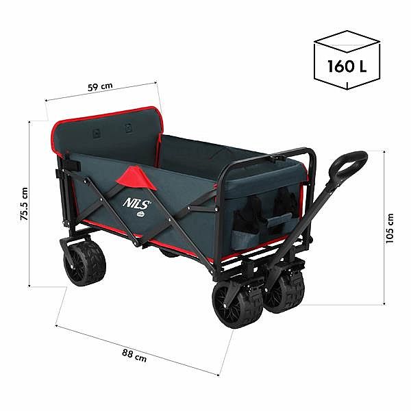 Turistický vozík NILS Camp NC2601 je ideálny pre všetkých, ktorí si užívajú aktívny oddych, kempovanie a rodinné výlety. Vďaka pevnej konštrukcii a premyslenej funkčnosti perfektne poslúži pri preprave plážového vybavenia, nákupov, batožiny alebo piknikových doplnkov. Je tiež nepostrádateľnou oporou v kempoch a na festivaloch.