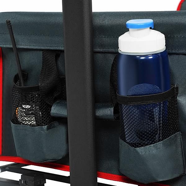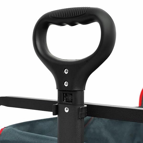 Vozík je navrhnutý s dôrazom na pohodlie. Má nastaviteľné madlo, ktoré je možné prispôsobiť výške užívateľa a zaistiť tak ergonomické a pohodlné vedenie. Veľké široké kolesá s rozmermi 18 x 10 cm vyrobené z kombinácie polypropylénu a PVC zvládajú bez problémov rôzne povrchy – asfalt, trávu aj piesok. Zadnú stenu je možné sklopiť a uložiť tak napríklad dlhšie predmety. Predné kolesá sú vybavené brzdami na zaistenie vozíka na mieste.