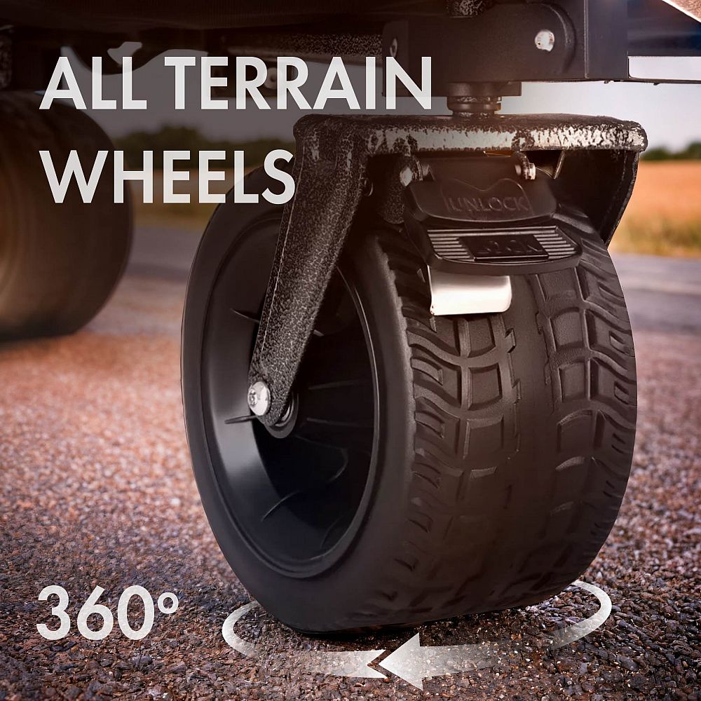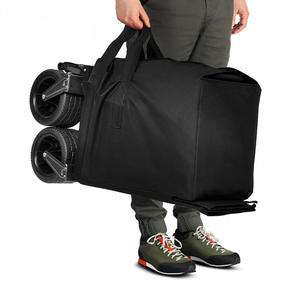 Korba vozíka je zhotovená z polyesteru v úprave 600D Oxford, ktorý je odolný proti oderu a vlhkosti. Materiál skvele odoláva intenzívnemu používaniu a zároveň sa ľahko udržuje v čistote, čo z neho robí ideálnu voľbu pre vonkajšie aktivity.
