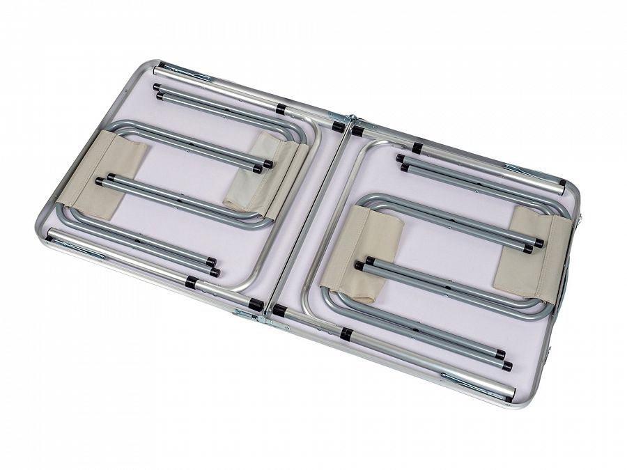- Materiál: hliník, MDF doska stola, polyesterová tkanina