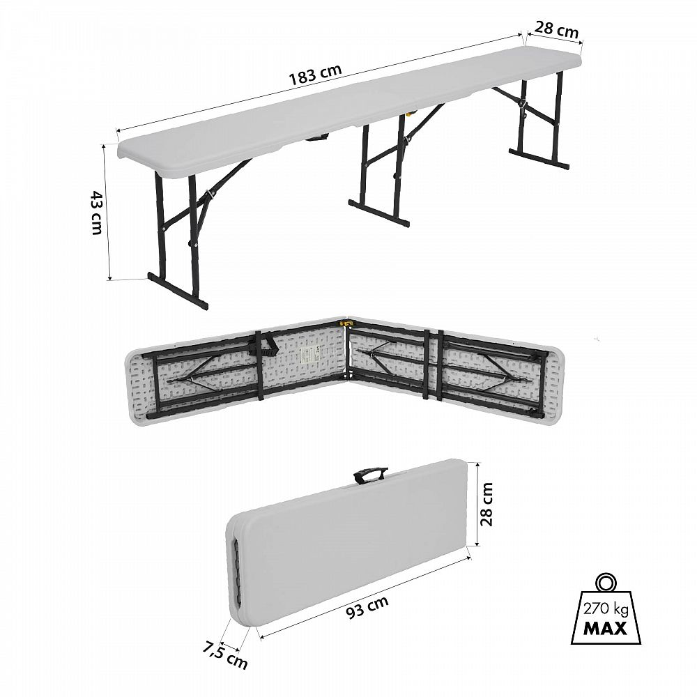 Minimalistický dizajn tejto sady sa hodí do akéhokoľvek prostredia – od prírodných scenérií po moderné interiéry. Vďaka neutrálnym farbám a jednoduchému vzhľadu sa stôl aj lavica skvele hodia na záhradu, terasu, pikniky aj väčšie spoločenské udalosti.