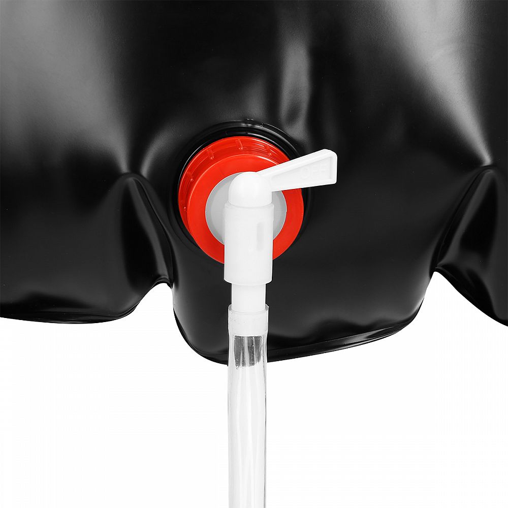 Sprcha je vyrobená z pevného, odolného materiálu, ktorý vydrží mnoho sezón. Pri slnečnom žiarení sa nádoba s vodou môže zahriať až na 48 stupňov Celzia. Súčasťou celého setu je aj hadica so sprchovou hlavicou, ktorá výrazne zvyšuje komfort používania. Pri racionálnom dávkovaní spotreby vody môže plná nádrž s objemom 20l obslúžiť 2 osoby.