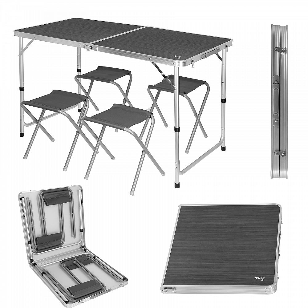 Popis: Sada skladacieho kempingového stola a stoličiek NILS Camp NC1633 tmavo šedá
