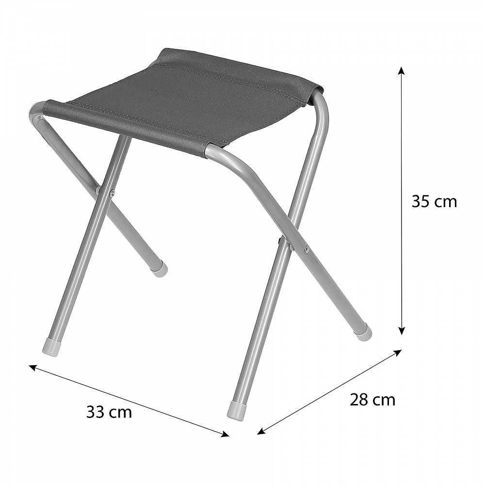 Štyri stoličky majú hliníkový rám a sedáky z odolného polyesteru. Po rozložení má každá stolička výšku 35 cm a plocha sedadla je 27 x 25 cm. Po zložení sa stoličky pohodlne uložia dovnútra zloženého stola (kufríka), čo šetrí miesto a robí z celej sady veľmi kompaktný celok.