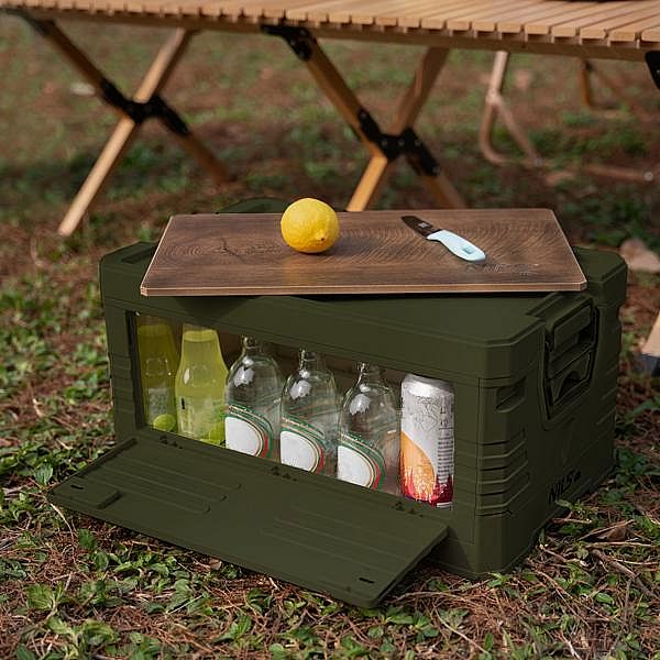 Skladací box NILS Camp NCB4002 2v1 s vekom a drevenou doskou 32L zelený