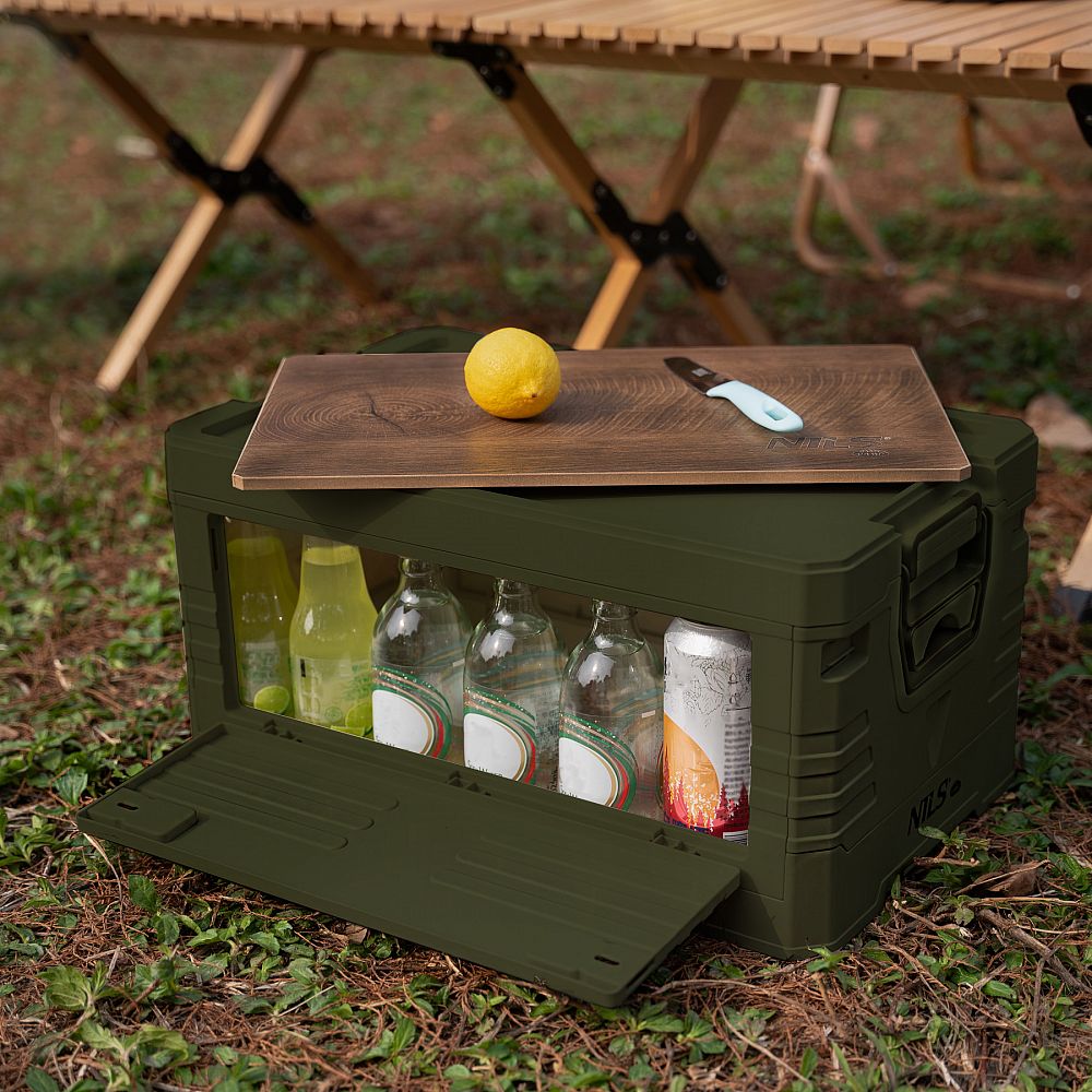 Popis: Skladací box NILS Camp NCB4002 2v1 s vekom a drevenou doskou 32L zelený