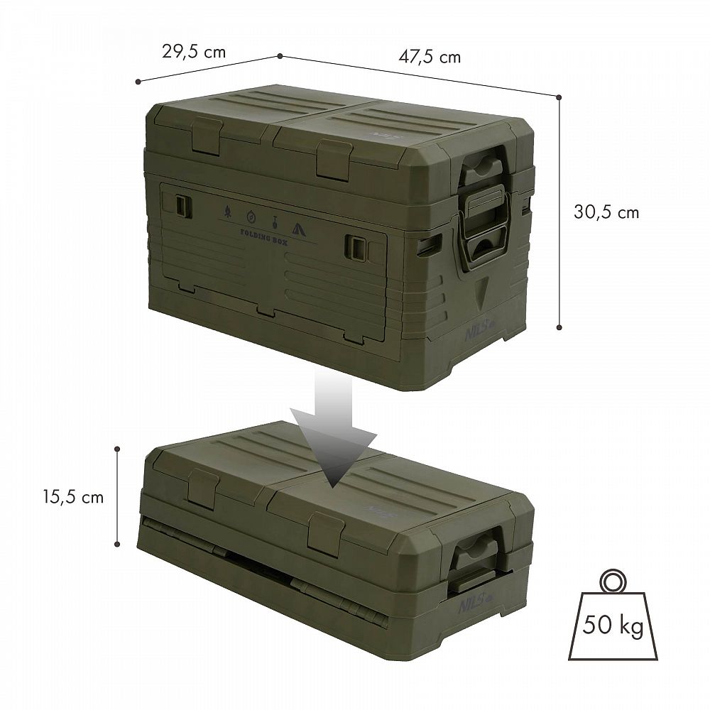 - Rozmery zloženého boxu: 47,5 x 29,5 x 15,5 cm