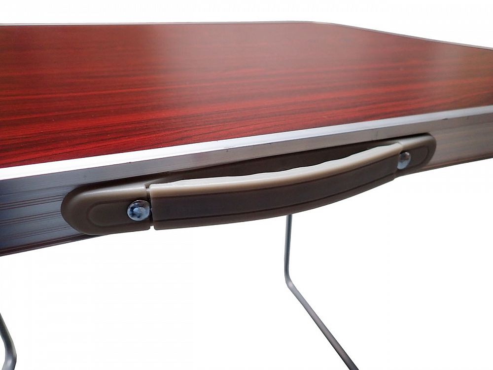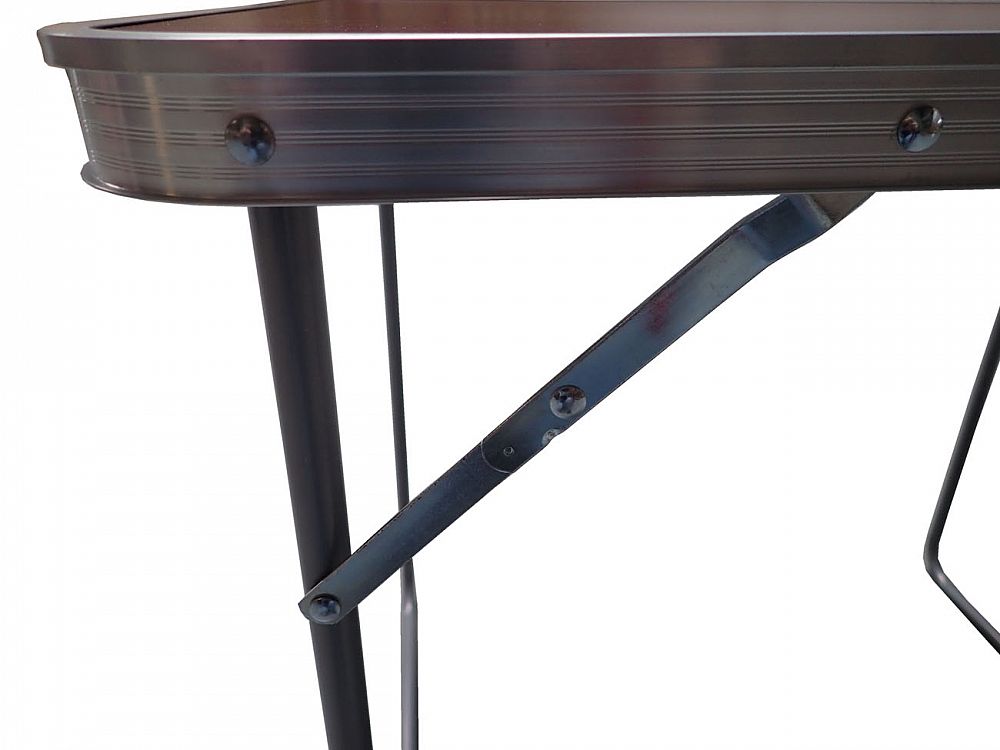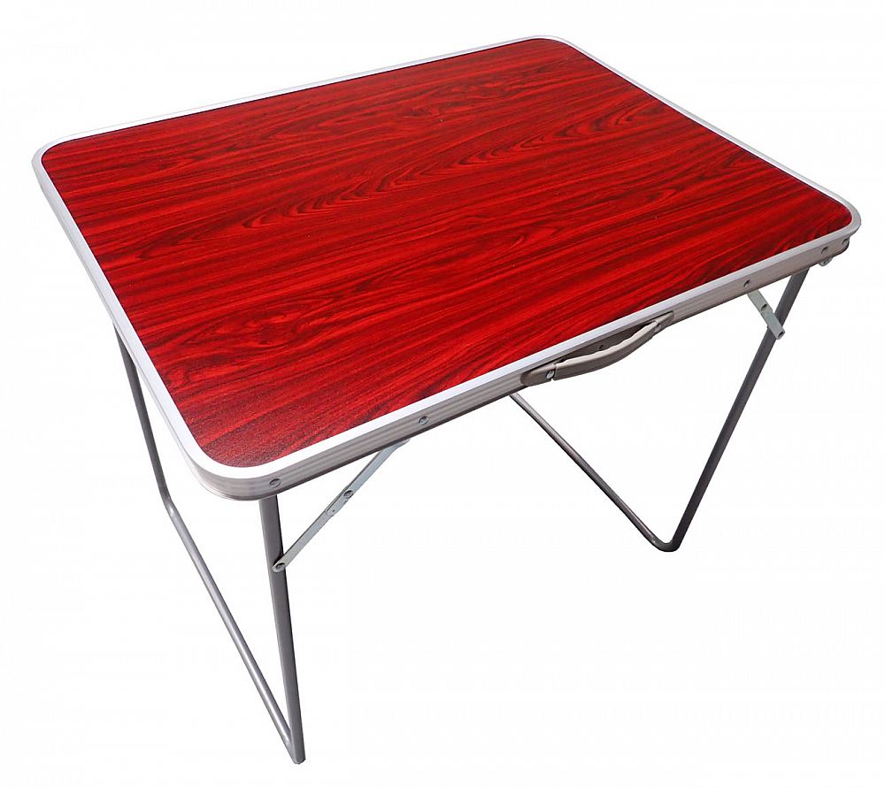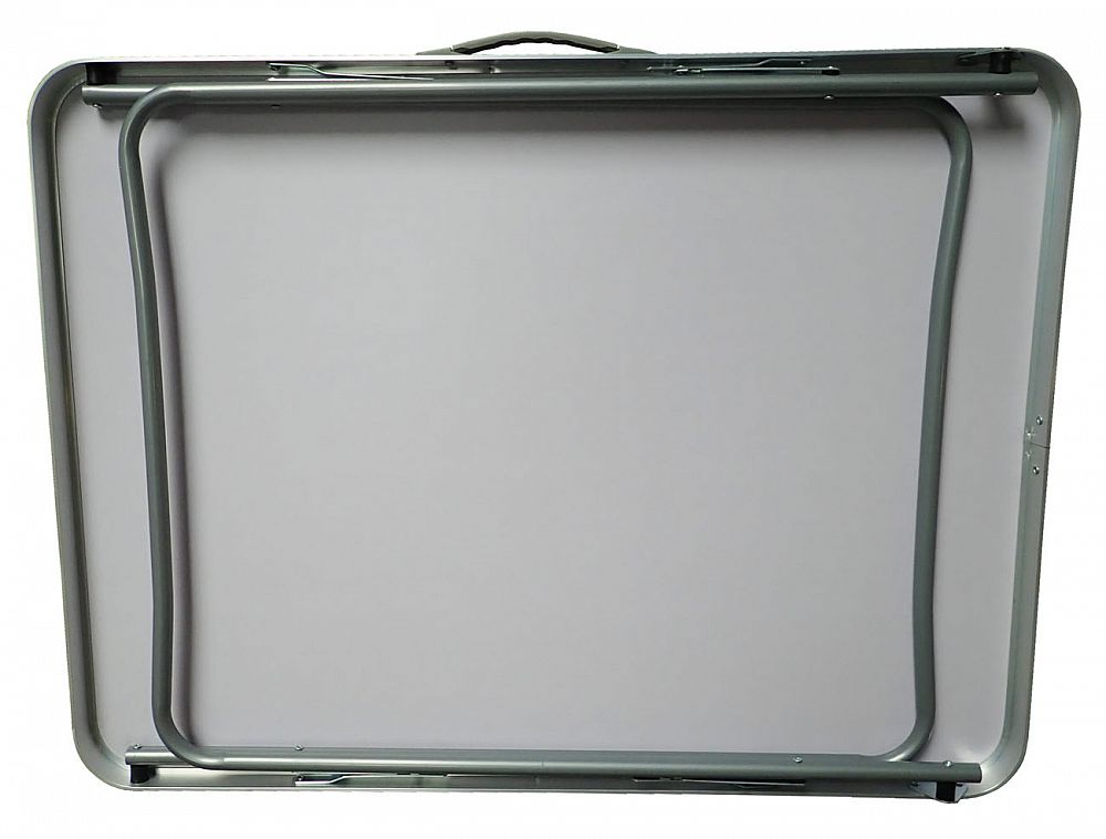 Skladací kempingový strolek 80 x 60 x 70 cm s dvoma sklápacími nohami opatrenými páčkovými aretáciami po oboch stranách stola. Oceľová konštrukcia a obvodový rám zaisťujú pevnosť, plastová umývateľná doska sa ľahko udržuje v čistote. Nosnosť stola je 20 kg,