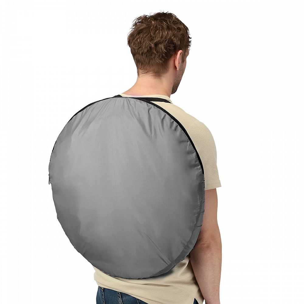 Vonkajšia vrstva je vyrobená z odolného polyesteru s vodeodolným záterom, ktorý chráni pred dažďom a vlhkosťou. Z vnútornej strany je nanesená strieborná izolačná vrstva, ktorá zabraňuje prehrievaniu kabíny od slnečných lúčov. Materiál je plne krycí a nepriehľadný, takže používanie prezliekárne zaručuje pohodlie a diskrétnosť.