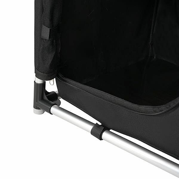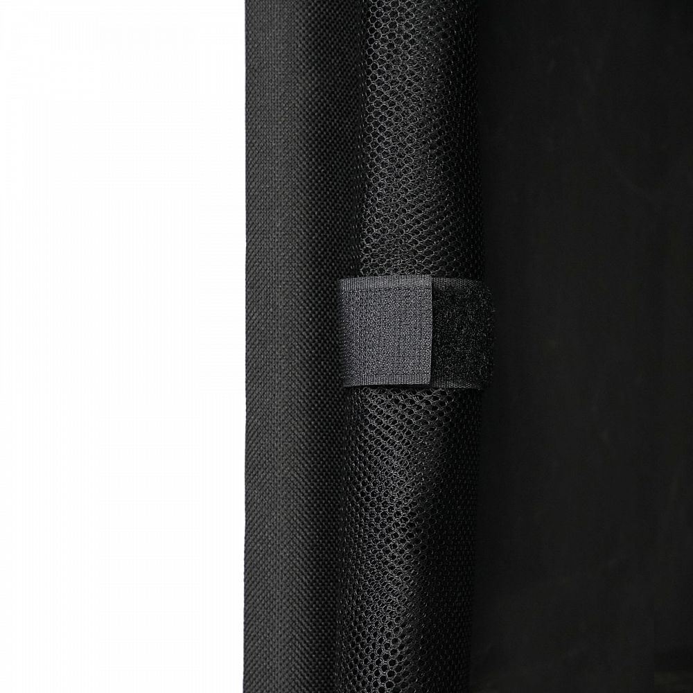 Predná časť je opatrená dvoma panelmi z priedušnej sieťoviny, ktoré sa zapínajú na zipsy. Toto riešenie chráni obsah pred hmyzom, zároveň zaisťuje dokonalú ventiláciu – nemusíte sa obávať nepríjemných pachov alebo vlhkosti.
