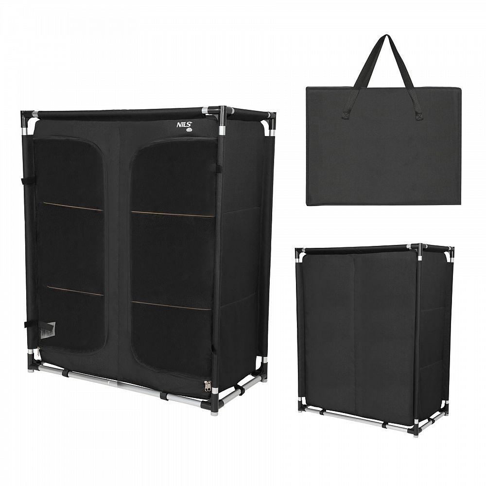 Chystáte sa na stanovanie, na chatu, do karavanu, alebo plánujete dlhší pobyt v kempe s rodinou či priateľmi? Turistická skrinka NILS Camp NC3034 je nevyhnutným prvkom vášho vybavenia, pokiaľ vám záleží na pohodlí a dobrej organizácii priestoru. Jedná sa o ľahkú, skladaciu konštrukciu, ktorá po rozložení zaisťuje pohodlie porovnateľné s domácou skriňou a po zložení zaberá minimálne množstvo miesta v batožine.
