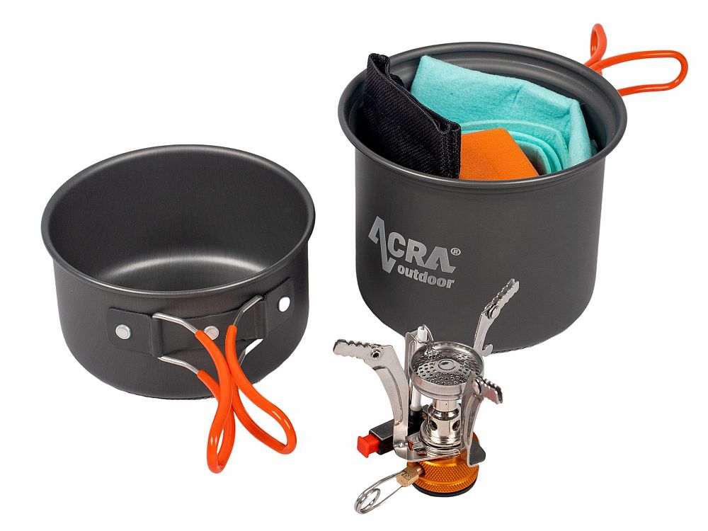 Popis: Acra C23 camping set riadu vrátane plynového variča pre 1-2 osoby