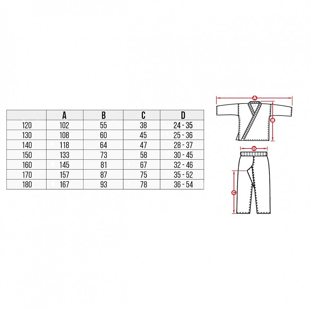 Ľahký a zároveň odolný materiál (zmes polyesteru a bavlny, cca 200 g/m2) zaisťuje voľnosť pohybu a vynikajúcu ventiláciu, vďaka čomu sa vaše dieťa môže plne sústrediť na tréning. Pohodlný strih, systém zosilnenia v rozkroku aj na okrajoch a dvojitý systém upevnenia nohavíc (guma + šnúrka) sú zárukou, že odev vydrží každý tréning a bude slúžiť dlhú dobu.