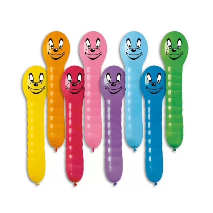Balónik nafukovacia húsenica s tvárou mix pastelových farieb.