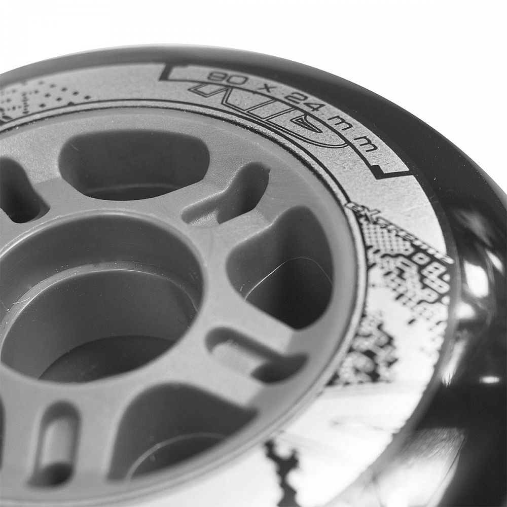 Priemer kolieska rovný 90 mm zaisťuje veľmi vysokú rýchlosť a slušnú ovládateľnosť. Tvrdosť 82A poskytuje vynikajúcu prispôsobenie každému terénu.