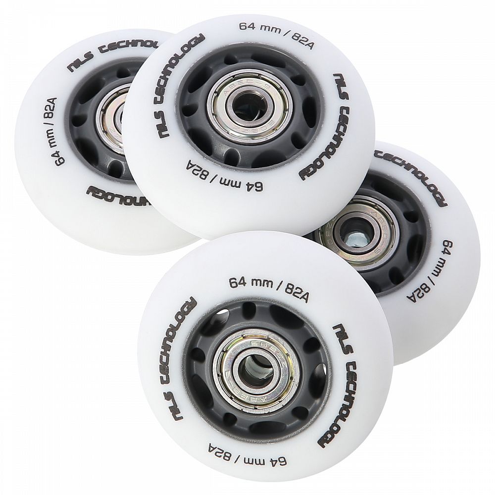 Popis: Matná kolieska NILS Extreme PU 64x24 82A s ložiskami ABEC 9, biela, 4 ks