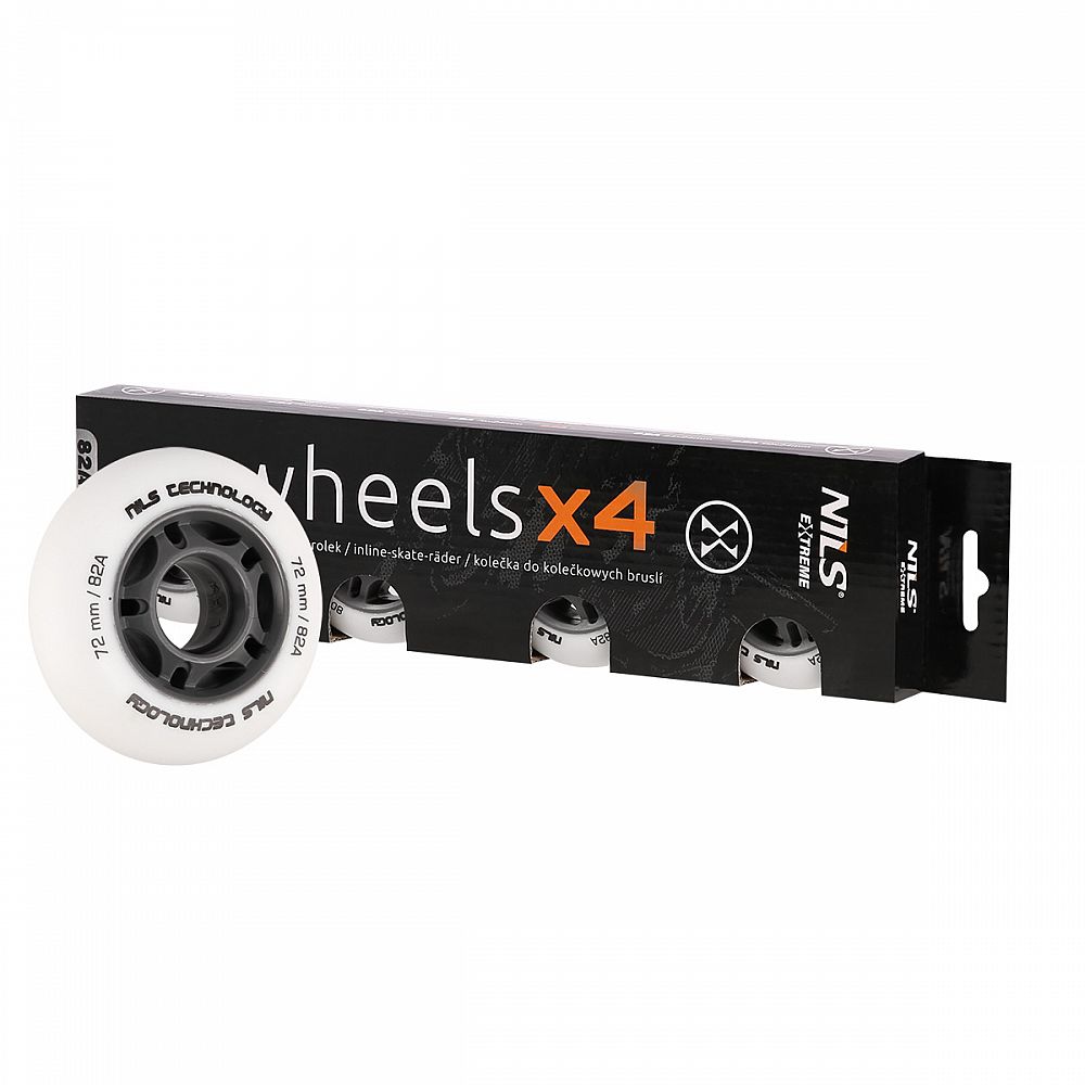 Popis: Matná kolieska NILS Extreme PU 72x24 82A, biela, 4 ks