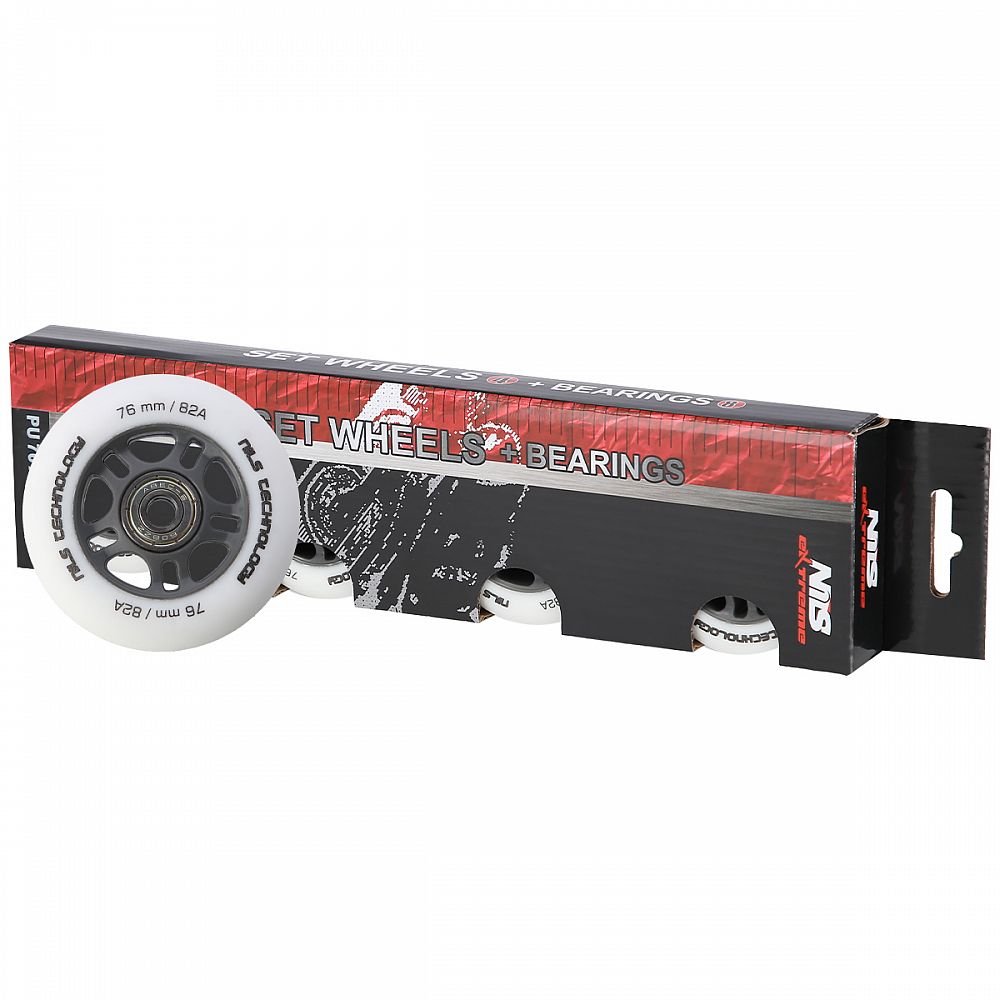 Matná kolieska NILS Extreme PU 76x24 82A s ložiskami ABEC 9, biela, 4 ks
