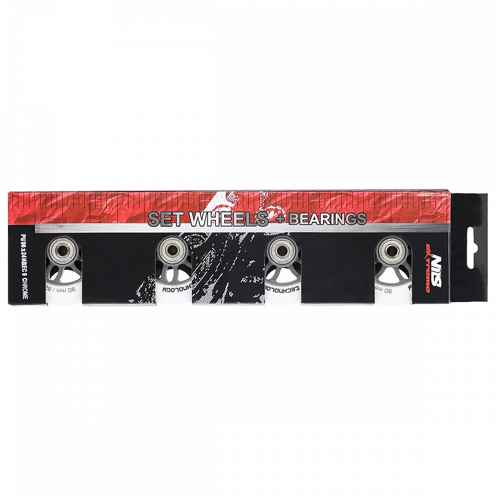 Matná kolieska NILS Extreme PU 90x24 82A s ložiskami ABEC 9, biela, 4 ks