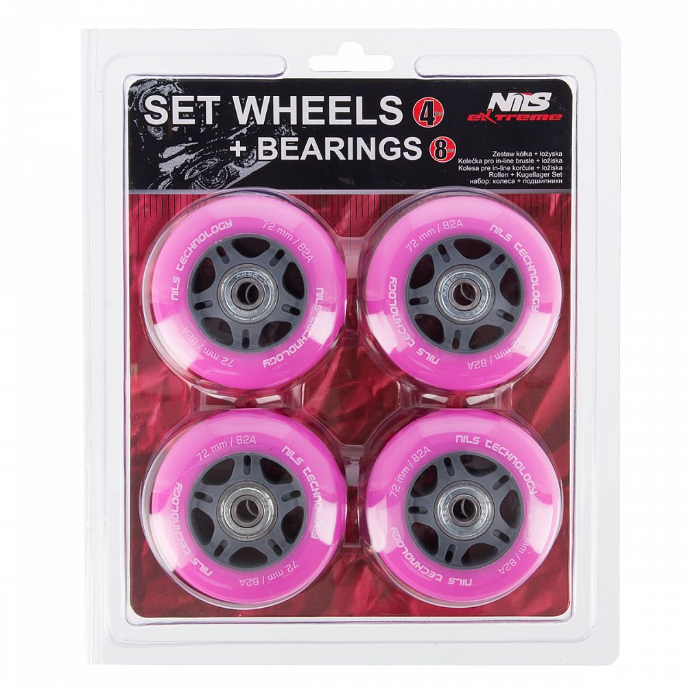 Popis: PU kolieska s ložiskami NILS EXTREME 72x24mm ABEC 7 ružové