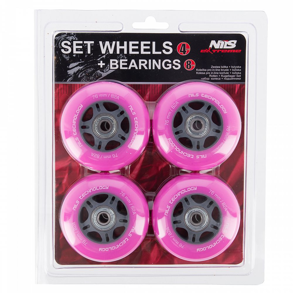 Náhradné PU kolieska s ložiskami NILS EXTREME pre kolieskové korčule. Tvrodst 82A zaručuje prispôsobenie každému povrchu. Ložiská ABEC 7 zaručujú dlhú životnosť. Veľkosť koliesok sa volí podľa štýlu jazdy. Menšie kolieska sú pomalšie, ale umožňujú lepšiu manévrovateľnosť. Väčšie kolieska sú rýchlejšie, ale ťažšie zatáča.