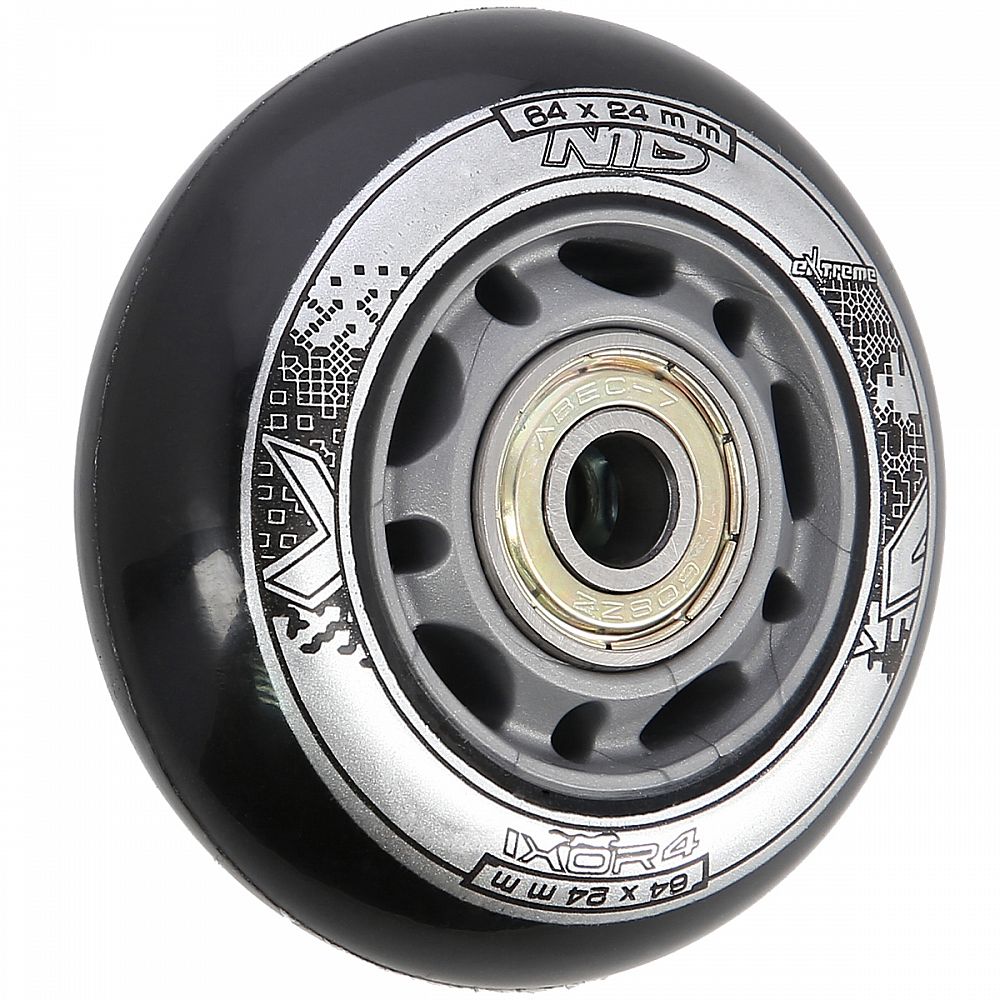 Náhradná sada koliesok veľkosti 64x24 mm čiernej farby a tvrdosťou 82 A s ložiskami ABEC 9.