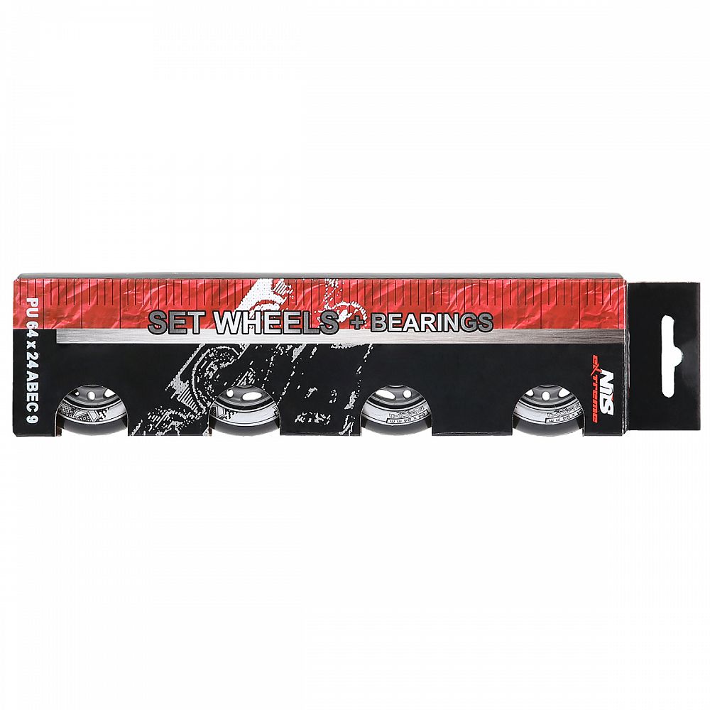 Zostava čiernych PU koliesok 64x24 + ložiská ABEC9 NILS EXTREME