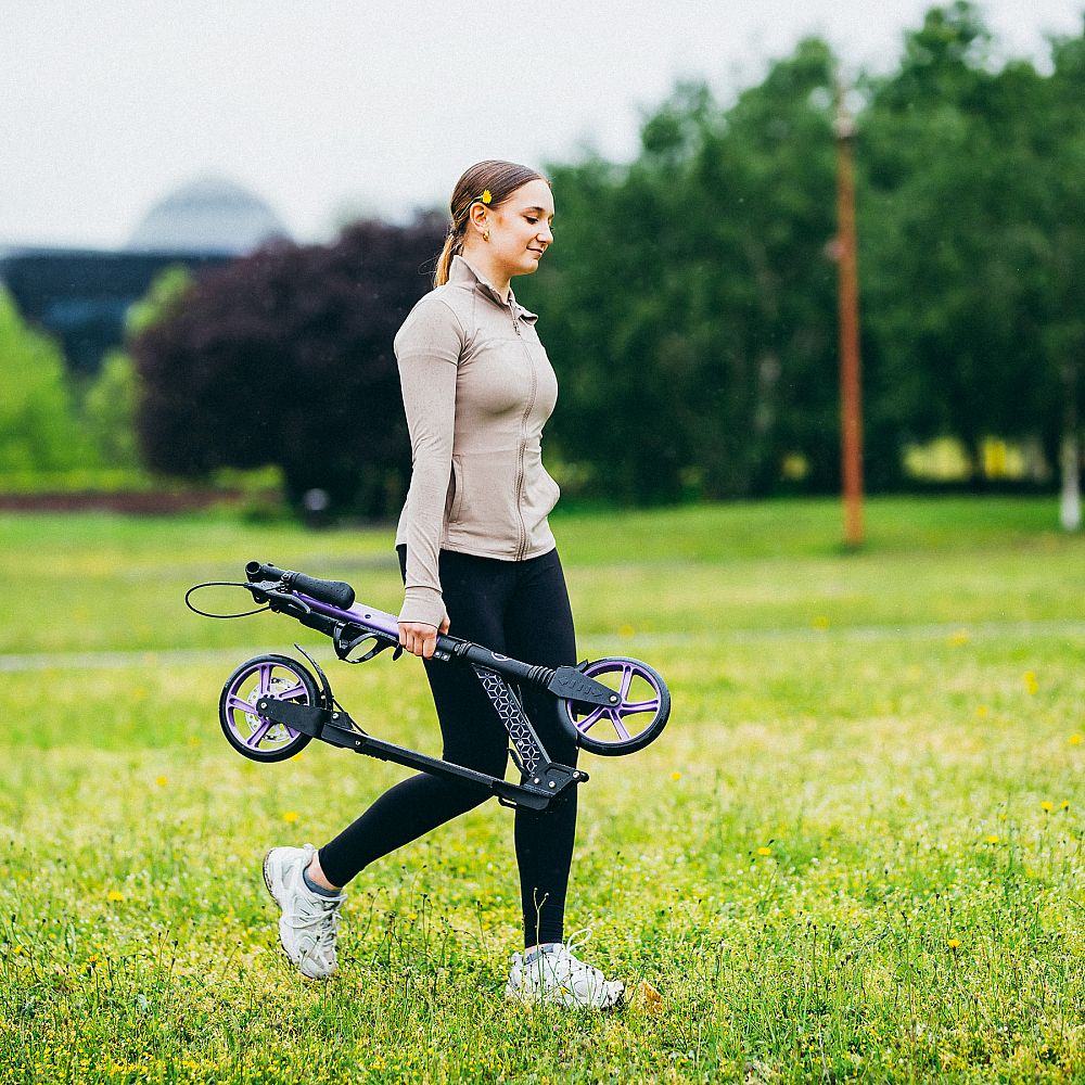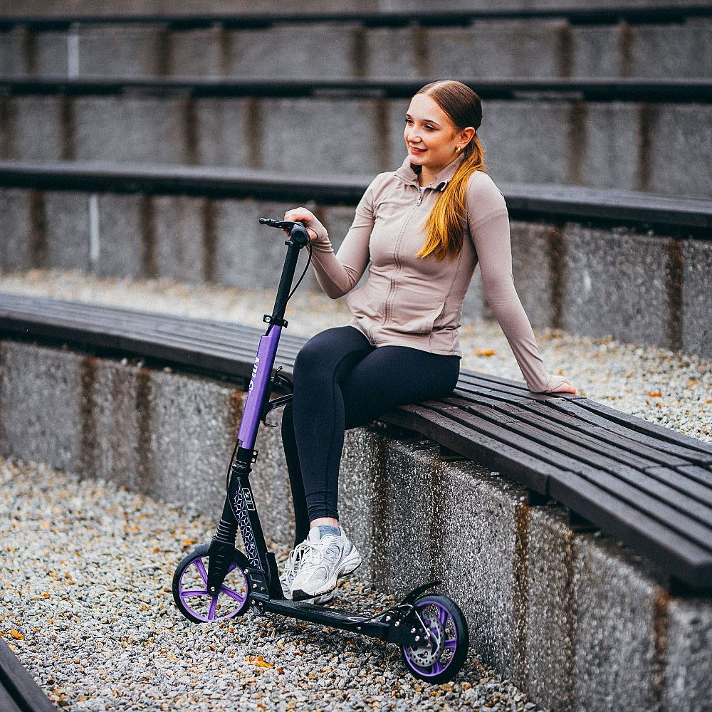 Vďaka veľkým polyuretánovým kolieskam s priemerom 200 mm a ložiskám ABEC 7 poskytuje kolobežka mimoriadne hladkú jazdu. Perfektne funguje na asfalte aj spevnených chodníkoch, zaručuje pohodlie a minimalizuje vibrácie aj na nerovnom povrchu.