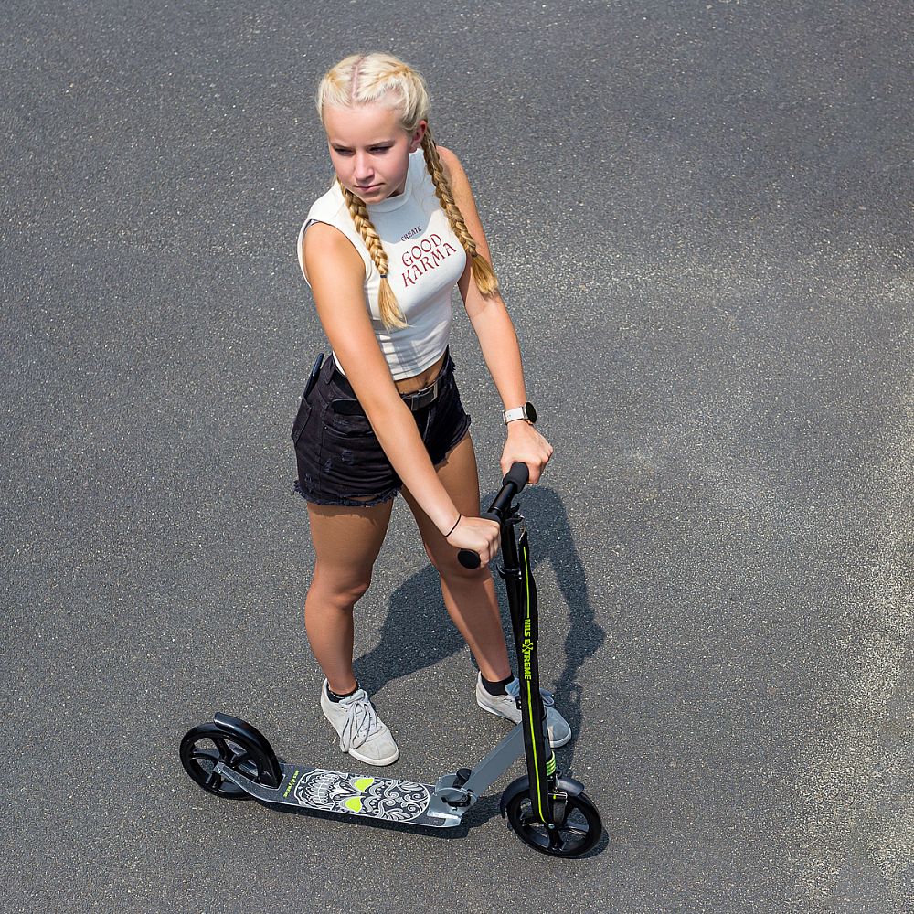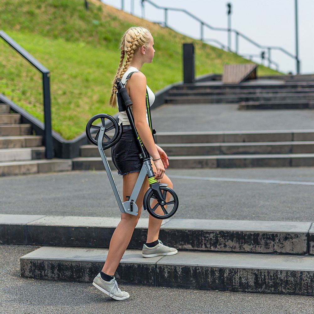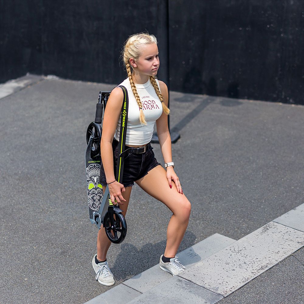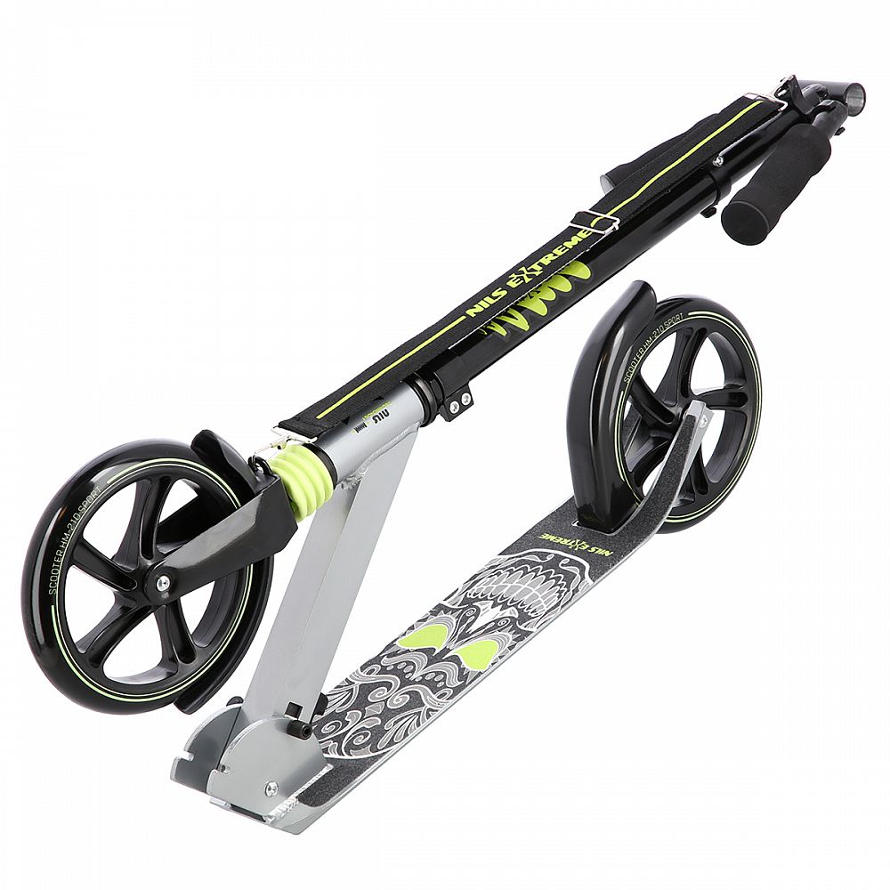 Kolobežka NILS Extreme HM210 je vhodná pre deti aj dospelých. Charakteristikou modelu HM210 je tlmič na prednom kolese a praktický popruh cez rameno.