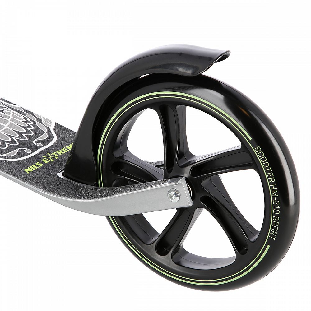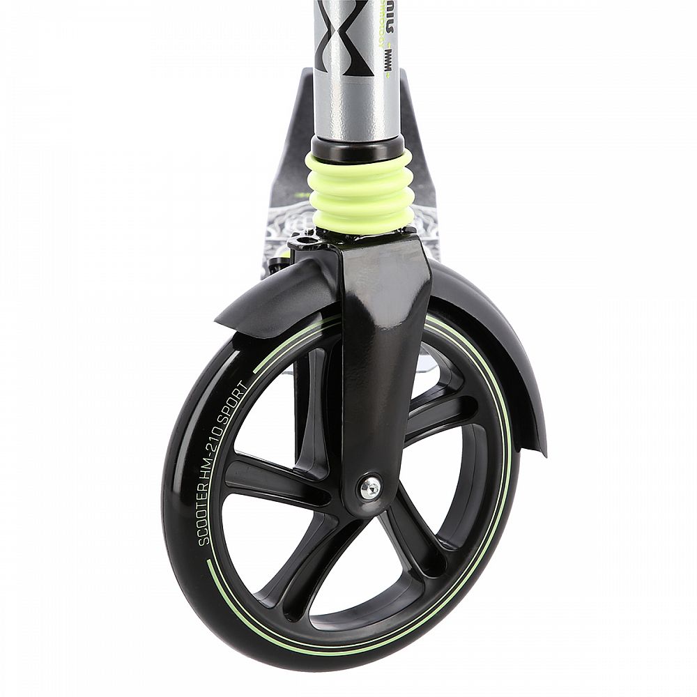 Systém odpruženia predného kolesa zvyšuje jazdný komfort. Tlmiče pohlcuje nárazy a jazda po nerovnom asfalte, alebo dlažobných kockách je príjemnejšia a ťažšia. Zadný blatník slúži ako prítlačná brzda. Riadidlá sú opatrené gumovými rukoväťami, ktoré zaisťujú pevný a pohodlný úchop. Veľké kolesá s priemerom 200 milimetrov sú osadené ložiskami ABEC 7 pre plynulú a bezpečnú jazdu. Blatník na prednom kolese je už len pomyselnou "čerešničkou na torte", ktorá prispieva k maximálnemu možnému komfortu z jazdy ak celkovej radosti zo samotného používania modelu MH210.