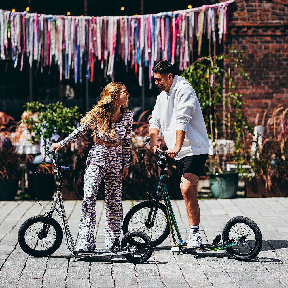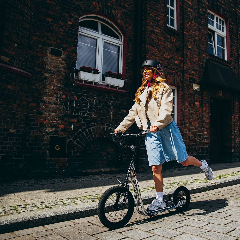 Jednou z najväčších výhod kolobežky WH10121 sú veľké nafukovacie kolesá: 16-palcové kolesá vpredu a 12-palcové vzadu. Vďaka ich veľkosti a konštrukcii kolobežka ponúka pohodlnú jazdu nielen na hladkom asfalte, ale aj na nerovnom chodníku, dlažobných kockách alebo štrkových cestách. Tlmenie, ktoré ponúkajú pneumatiky, účinne pohlcuje nerovnosti, čo sa prejavuje väčším pohodlím a menším zaťažením kĺbov. Je ideálny pre tých, ktorí si cenia plynulú jazdu a maximálnu kontrolu nad kolobežkou bez ohľadu na povrch.