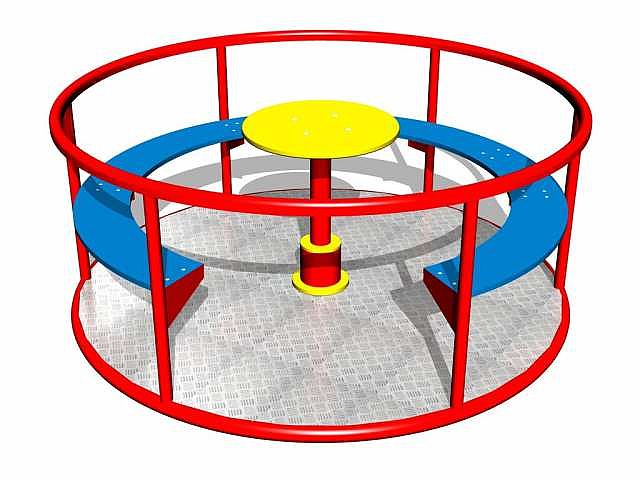 - Kolotoč na sedenie (priemer 1,45 m) - celokovový s protišmykovou podlahou, otočným stredom a sedákmi z HDPE
